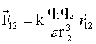 Это сила притяжения для разноименных зарядов, и отталкивания - для одноименных. В векторном и скалярном виде закон Кулона записывается следующим образом